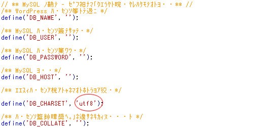OK,导入完成后,请到数据库里查看表,查看表的中文内容是否显示正常;如果乱码,在数据库里显示也肯定乱码了,说明编码有误。等一切确定完后,就是修改wp-config.php文件,修改新数据库内容,如图: