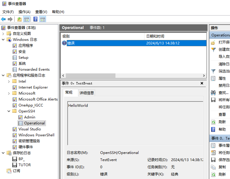 像平常我们开发的程序如果想更方便的查找错误,除了本地日志外,还可以将日志写入到Windows事件日志中的【应用程序和服务日志】类别下,可以方便我们快速查找问题。