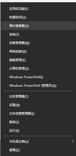 2、Windows+X打开的超级菜单中选择事件查看器。