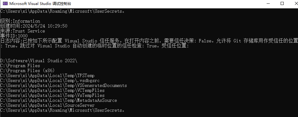 这里我们以Visual Studio日志为例,输出Visual Studio日志下的所有记录。