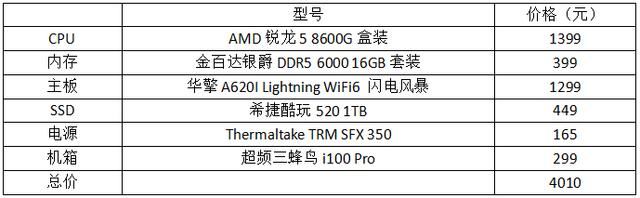 由于该机箱只能支持ITX主板的安装,从降低装机成本的考虑,选择了华擎A620I Lightning WiFi6 闪电风暴主板,具有强悍的 8+2+1相供电设计、8层PCB等设计,用料比较扎实,可以轻松支持锐龙5 8600G性能的全力释放。机箱只能支持≤60mm高度的散热器安装,查到锐龙5 8600G搭配的AMDWraith Stealth原装散热器高度不过38mm,能轻松装入机箱当中。