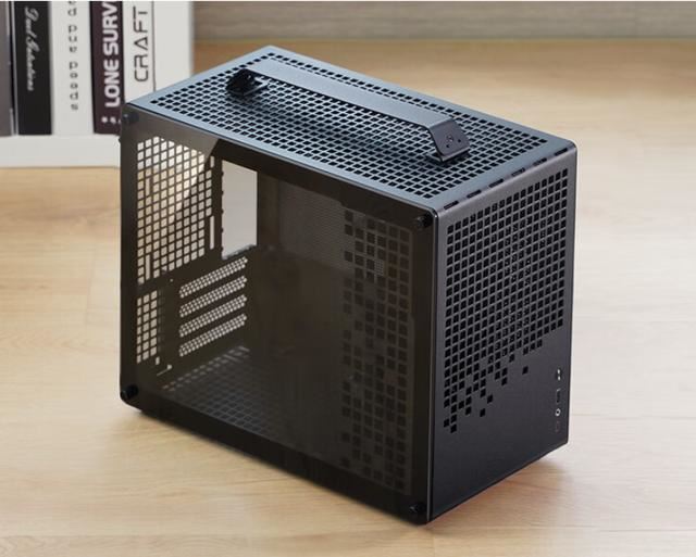 确定了核心平台,就要根据机箱的兼容性来确定其他硬件。这次我们选择了乔思伯Z20,这款机箱尺寸为382m×198mm×335mm(含底座和提手),体积大约为20L,也算是比较的小巧。同时机箱能容纳M-ATX主板、363mm长显卡、SFX电源、240mm一体式水冷散热器等,基本上用接近ITX机箱的体积实现了M-ATX机箱的兼容性。另外产品面板和顶板为2mm厚一体化弯折钢板,表面加入大面积的精致方格开孔,显得工艺精致又有质感。