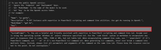 配置过程同样简单,以 OpenAI 为例,只需在 PowerShell 中运行 Start-AIShell 命令,选择首选智能体,再运行 / agent config 命令打开配置文件,添加 API 密钥即可。