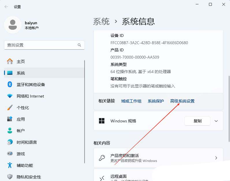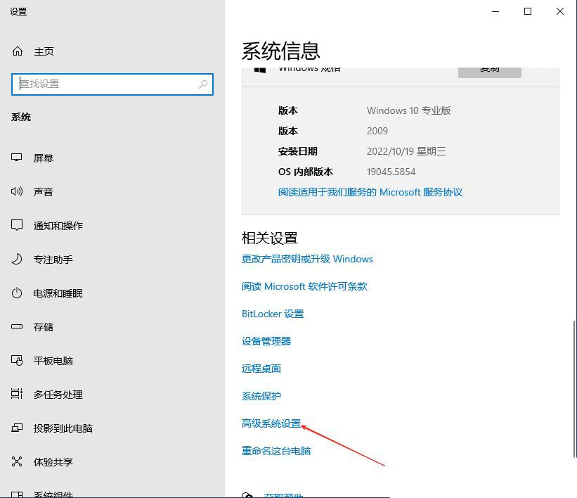 2、接着,在打开的界面中,找到并点击打开其中的“高级系统设置”。