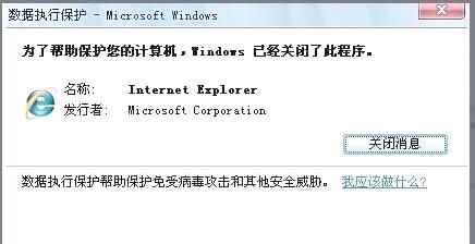 有时,系统会突然弹出一个对话框,显示“数据执行保护”的提示窗口,即便点击关闭后,不久又再次出现,这确实令人烦恼。