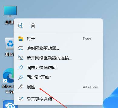 1、首先,右键点击Win11系统桌面的“此电脑”图标,选择打开“属性”界面。