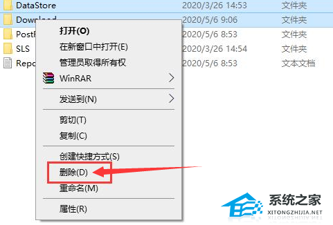 6. 选中该文件夹中“Datastore”与“Download”文件夹,然后右键点击这两个文件夹,在弹出菜单中选择“删除”菜单项,把这两个文件夹删除。