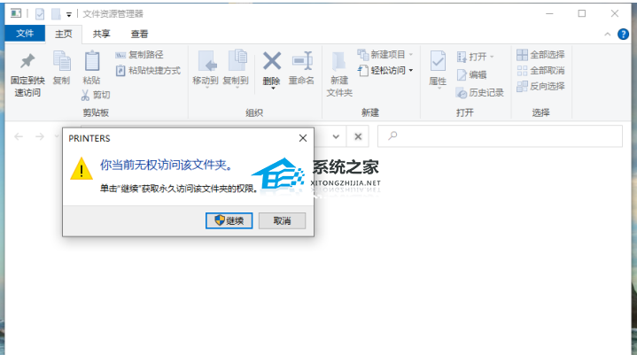 4、PRINTERS 提示:你当前无权访问该文件夹,单击“继续”获取永久访问该文件夹的权限;