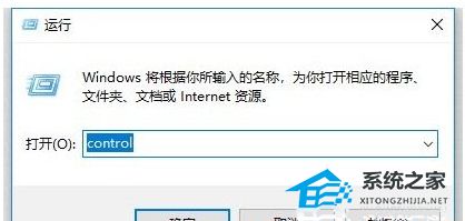 2、运行窗口,输入【control】命令,按【确定或回车】打开控制面板;