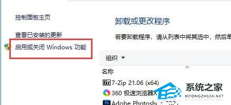 4、然后点击左边栏【启用或关闭 Windows 功能】;