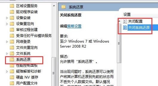 2、在组策略中找到“系统还原选项”,双击打开右侧的“关闭系统还原”。