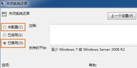 3、勾选“已禁用”,再点击下方“确定”就可以正常进行系统还原了。