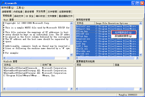 2) 注册表HKEY_LOCAL_MACHINE\SOFTWARE\Microsoft\Windows NT\CurrentVersion\Image File Execution Options下多出了许多劫持项,导致一些安全类软件和工具无法打开。