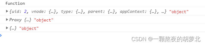 可以看出,getCurrentInstance是一个方法,getCurrentInstance()是一个对象,ctx和proxy也是一个对象,ctx和proxy是getCurrentInstance()对象中的一个属性,通过解构赋值的方式拿到的,ctx是一个普通的对象,而proxy是一个proxy对象,两者里面都可以看到当前组件的data值和方法,可以使用proxy[属性名]去获取实例对象中的数据或者调用对象中的方法;