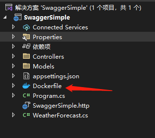 此时项目中会增加一个名为 Dockerfile 的配置文件。