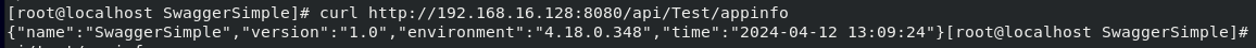 输入命令:curl http://192.168.16.128:8080/api/Test/appinfo查看是否存在返回结果。
