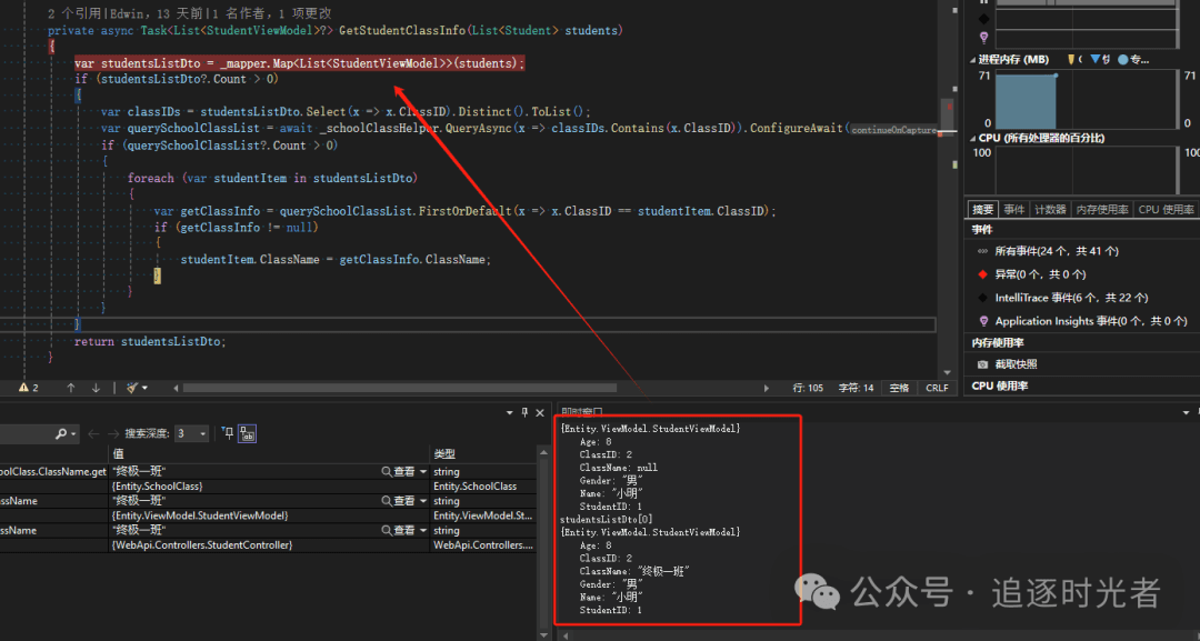 接下来我们使用使用IMapper接口的Map方法来进行对象映射操作。