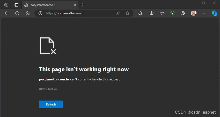 步骤3. 我尝试发布并收到错误503。这是正常的,这就是我们将修复的问题。