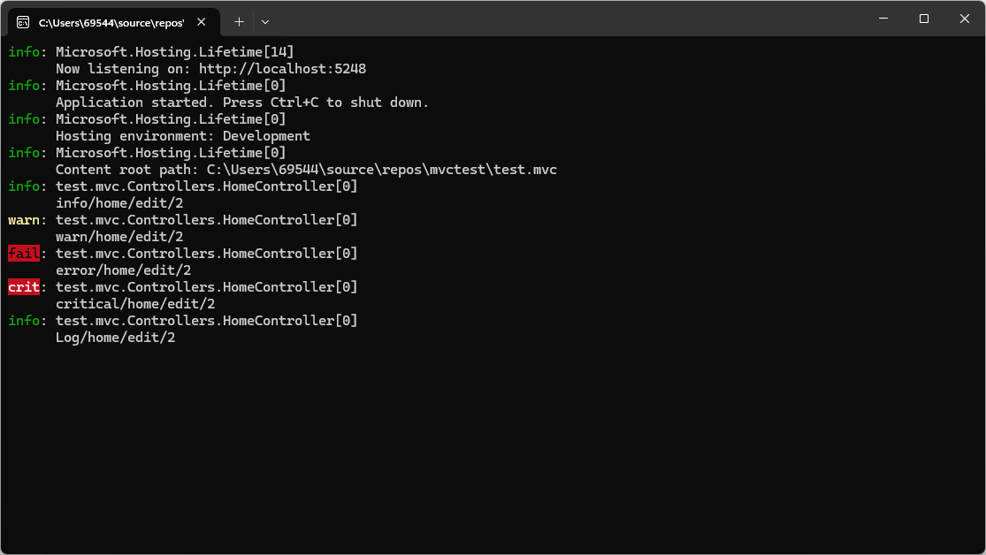 _logger.Log(LogLevel.Information, "Log{path}", HttpContext.Request.Path);打印效果如下