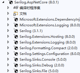 引入包Serilog.AspNetCore。并不需要引入Serilog.Sinks.File,因为Serilog.AspNetCore已经引入了文件介质的提供程序