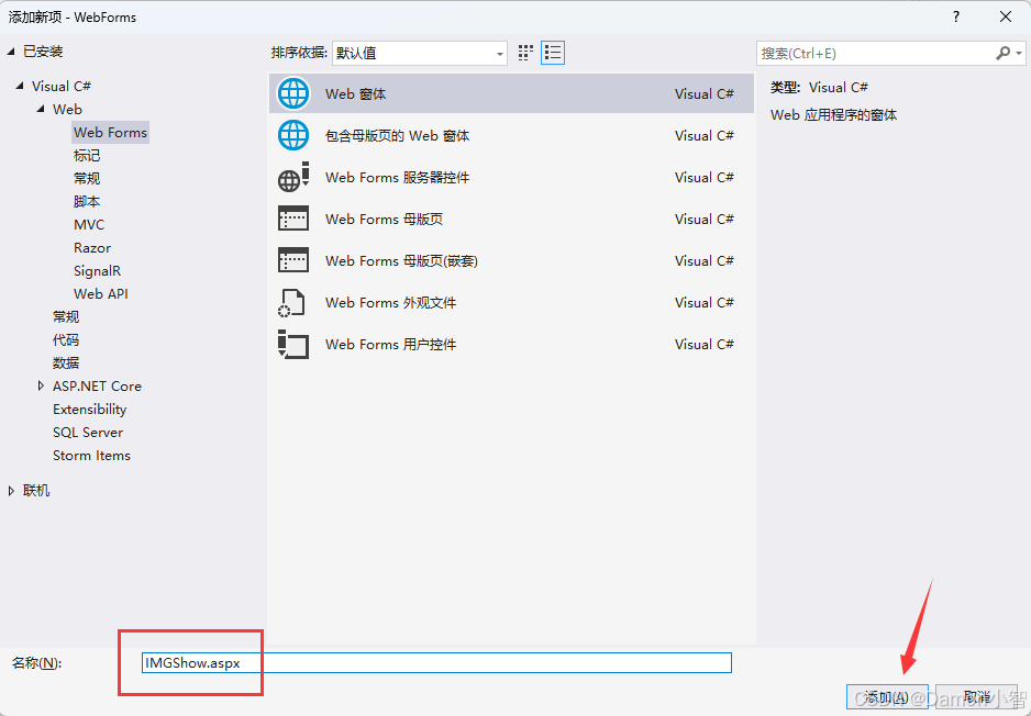 首先,我们需要创建一个ASP.NET WebForms页面。在Visual Studio中,右键点击你的项目,选择添加 -> 新建项。