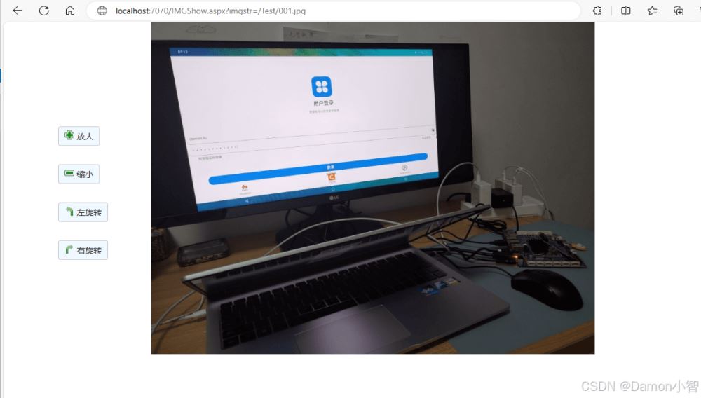 通过这些步骤,你将创建一个ASP.NET WebForms页面,用户可以在其中放大、缩小和旋转图片。这些功能是通过JavaScript动态控制图片的width、height和transform属性实现的。