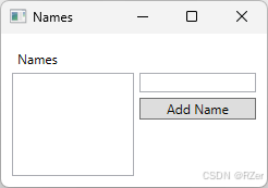 我们将添加的最后两个控件是一个文本框和一个按钮,用户使用该文本框输入名称以添加到列表框。 但是,我们不会尝试在网格中创建更多行和列来排列这些控件,而是将这些控件放入 布局控件中。