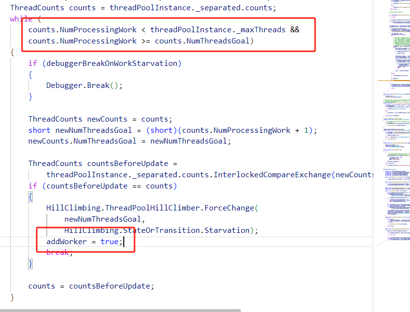 CLR线程池使用爬山算法来动态调整线程池的大小来来改善线程饥饿的问题。本人水平有限,放出地址,有兴趣的同学可以自行研究https://github.com/dotnet/runtime/blob/main/src/libraries/System.Private.CoreLib/src/System/Threading/PortableThreadPool.HillClimbing.cs