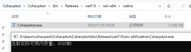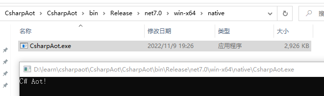 剩下 CsharpAot.exe 文件后,启动这个程序: