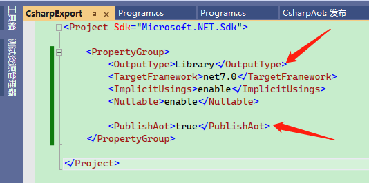 为了能够让项目发布时使用 AOT 模式,需要在项目文件中加上 选项。