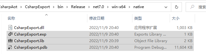 CsharpAot.pdb光用 .exe 即可运行,其他是调试符号等文件,不是必需的。