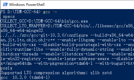 运行 gcc -v,检查是否安装成功,以及版本是否正确。