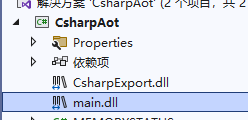 将 main.dll 文件复制放到 CsharpAot 项目中,设置 始终复制。