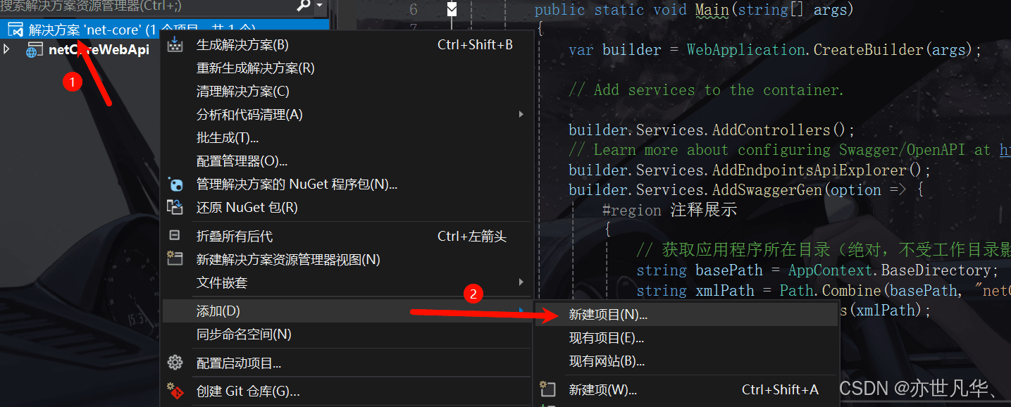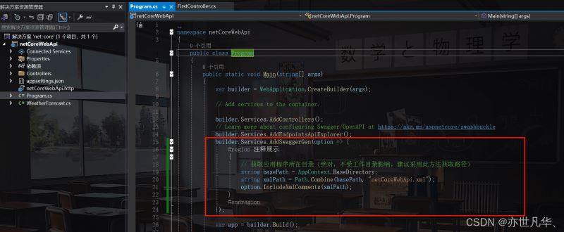 接下来如果说我们想把注释展示到Swagger文档中的话,我们需要来到入口文件Program.cs对我们的Swagger进行一个配置,给原本的AddSwaggerGen添加一个配置对象,代码如下: