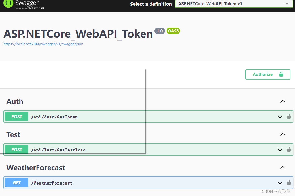 1. 获取Token运行api/Auth/GetToken接口,输入用户信息,点击Execute,在返回的ResponseBody中,就可以获取接口返回的Token