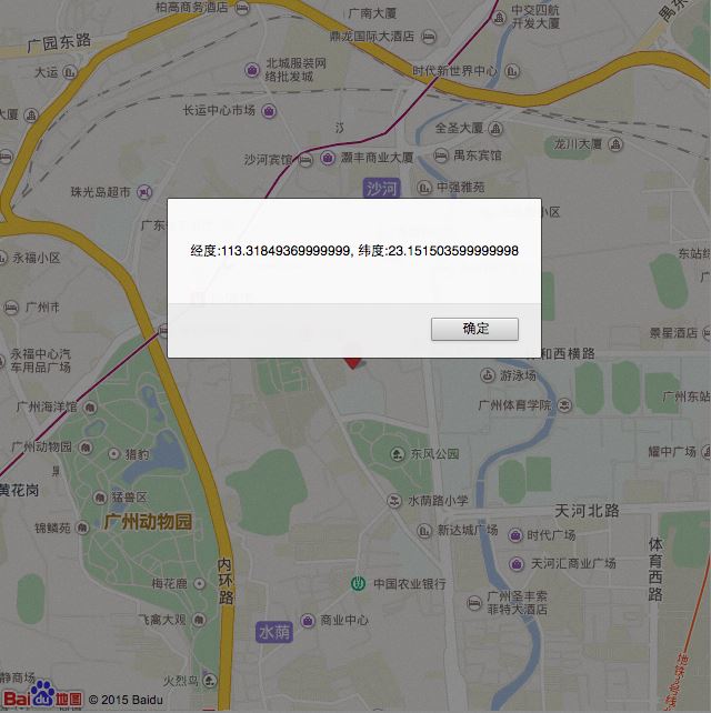 alert("经度:" + longitude + ", 纬度:" + latitude);