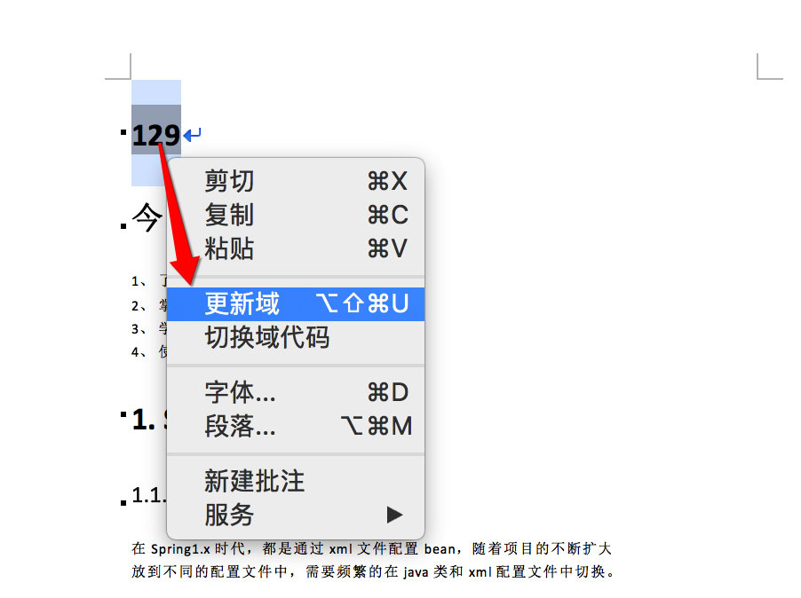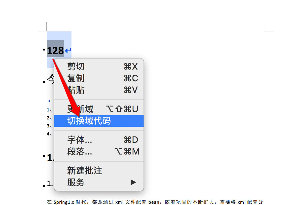 右击鼠标选择【切换域代码】,可以看到对应的域代码。