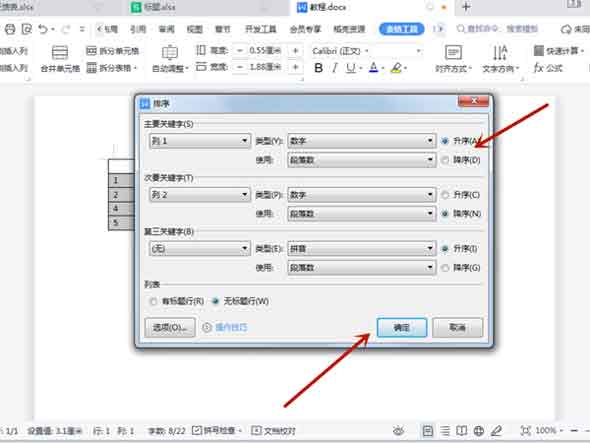 word表格升序降序使用方法