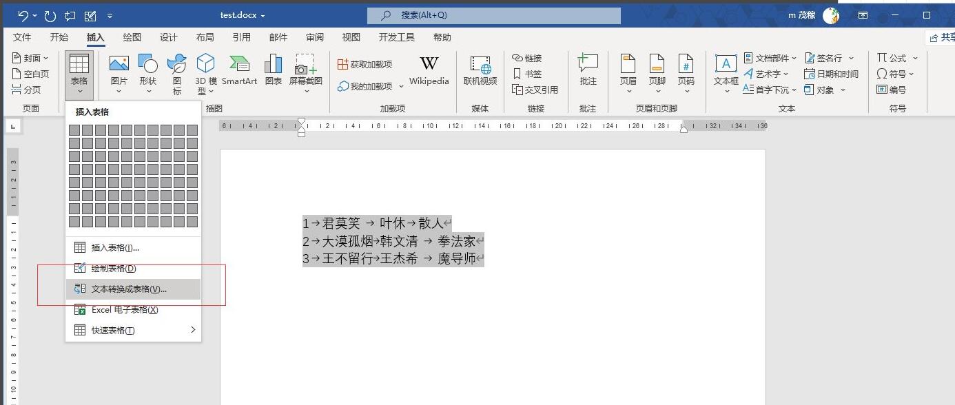 word2021文字转换成表格方法