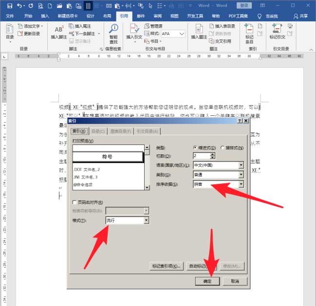 这样,在同一个Word文档中,就建立起了2个索引,2个索引分别按照拼音和笔划进行排序,可以很方便地根据需要,在不同的索引中查找需要的索引项。