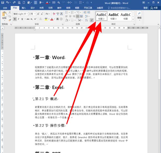 现在,就需要给第二章的标题1和标题2样式创建为章目录。