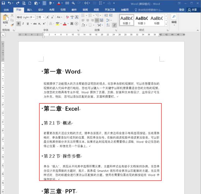 而其中某一章的节标题则使用上【标题2】样式。