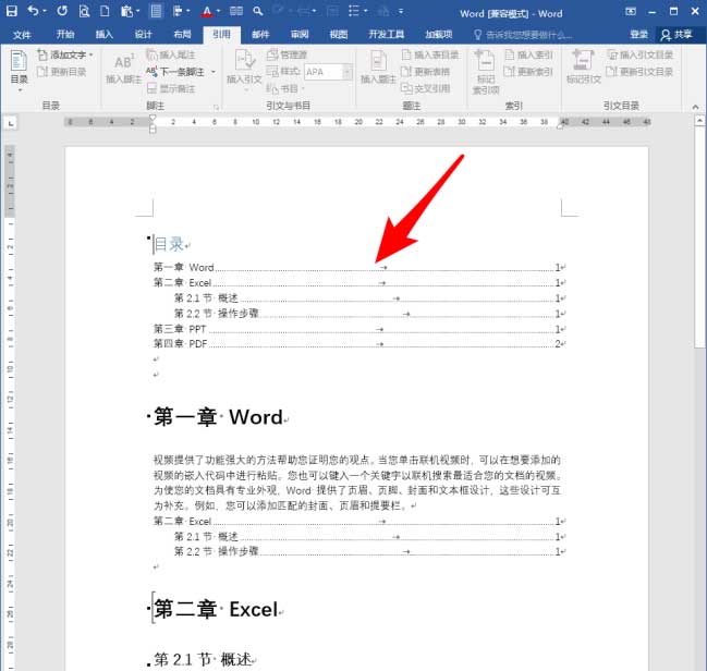 这样,就生成了第二章的章目录。