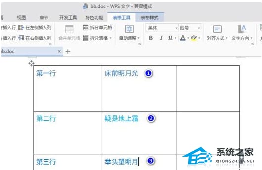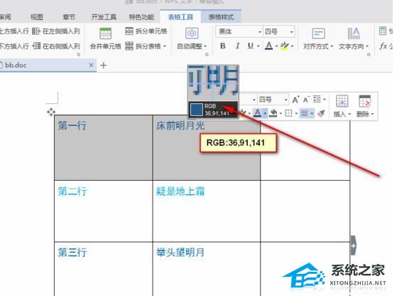 7、将所有行的字体设置成①颜色的蓝色效果图。