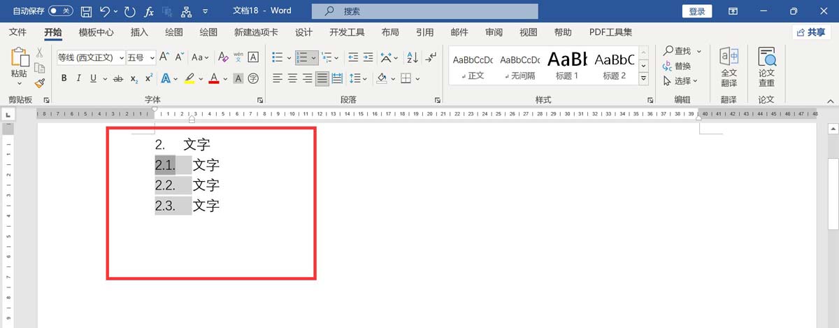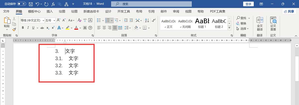 点击确定,文字前面的编号从2.1变成3.1。