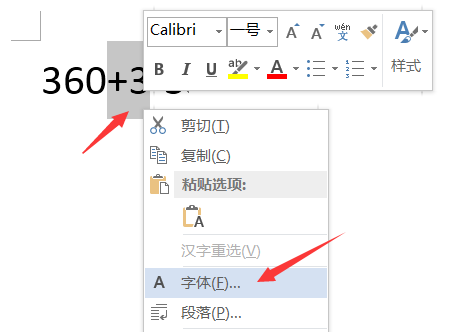 2、选中上标公差,点击鼠标右键,选择"字体"。