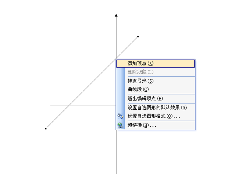 5、接着选择倾斜直线和垂直箭头的交点位置,右键单击从下拉菜单中选择添加顶点。