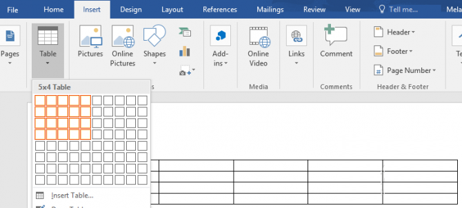 2.将鼠标悬停在表格网格中的正方形上,以选择表格中所需的列数和行数。