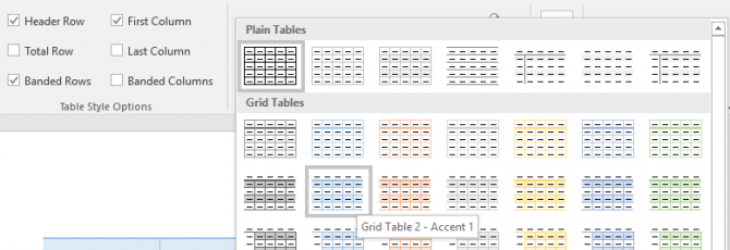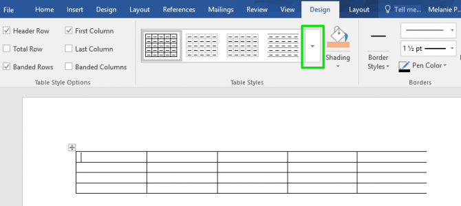 5.从表格样式库中选择样式并记下样式名称。您需要在下面的步骤中使用该名称。