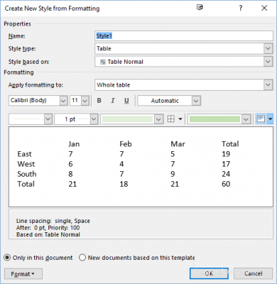 12.单击确定。您现在可以在图库中看到新的表格样式,并可以选择该格式以便通过一次单击来格式化任何未来的表格。